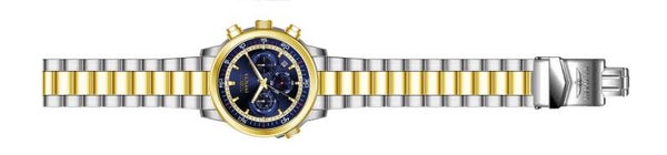 Denne imponerende Invicta Specialty-klokken har et presist kvartsurverk samt en stålkasse. Den blå metallskiven er omsluttet av et svært beskyttende Flame Fusion-krystall. Klokken har en sterk rem i stål, gull og rustfritt stål, og den er vanntett ned til 100 m.